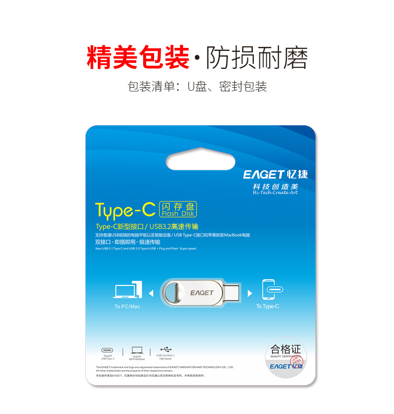 USB3.2 Type-c 雙接口 全金屬設計,質感超群 小巧便攜,個性化設計 安全防水 防震性強 手機、電腦硬盤兩用廣泛兼容性 360°鋼環(huán)掛鉤,輕松切換 產品尺寸:約36.5*12.2*7.5mm 包裝尺寸:11.3*9*cm 單品重量:6.8g